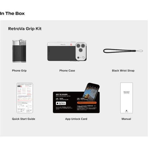 RetroVa All-in-one Ultimate Gift Set: Includes everything in the Grip Kit, plus a 2.35× Telephoto Extender lens, a Lens Tripod Collar (Arca-Swiss compatible), and a premium gift box.