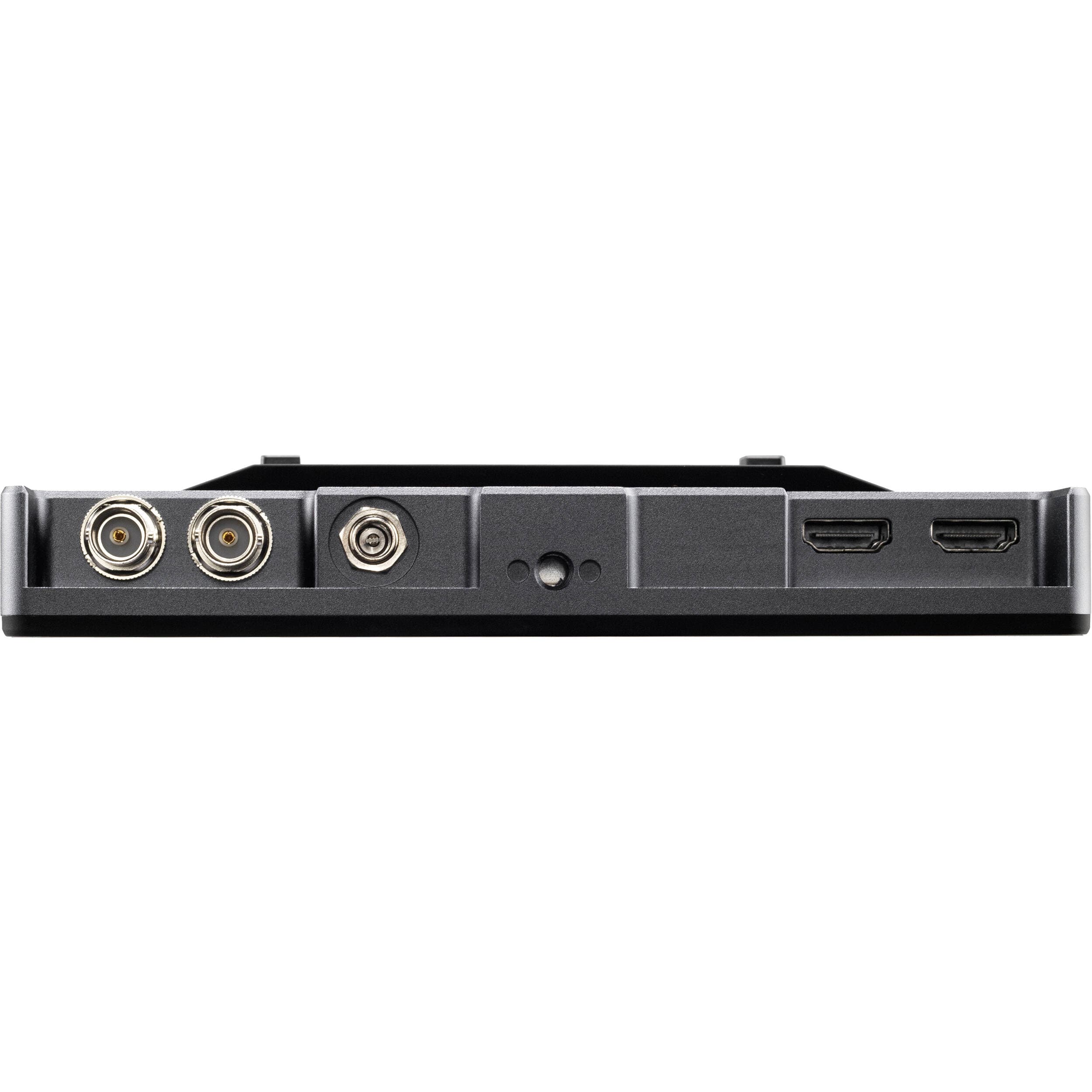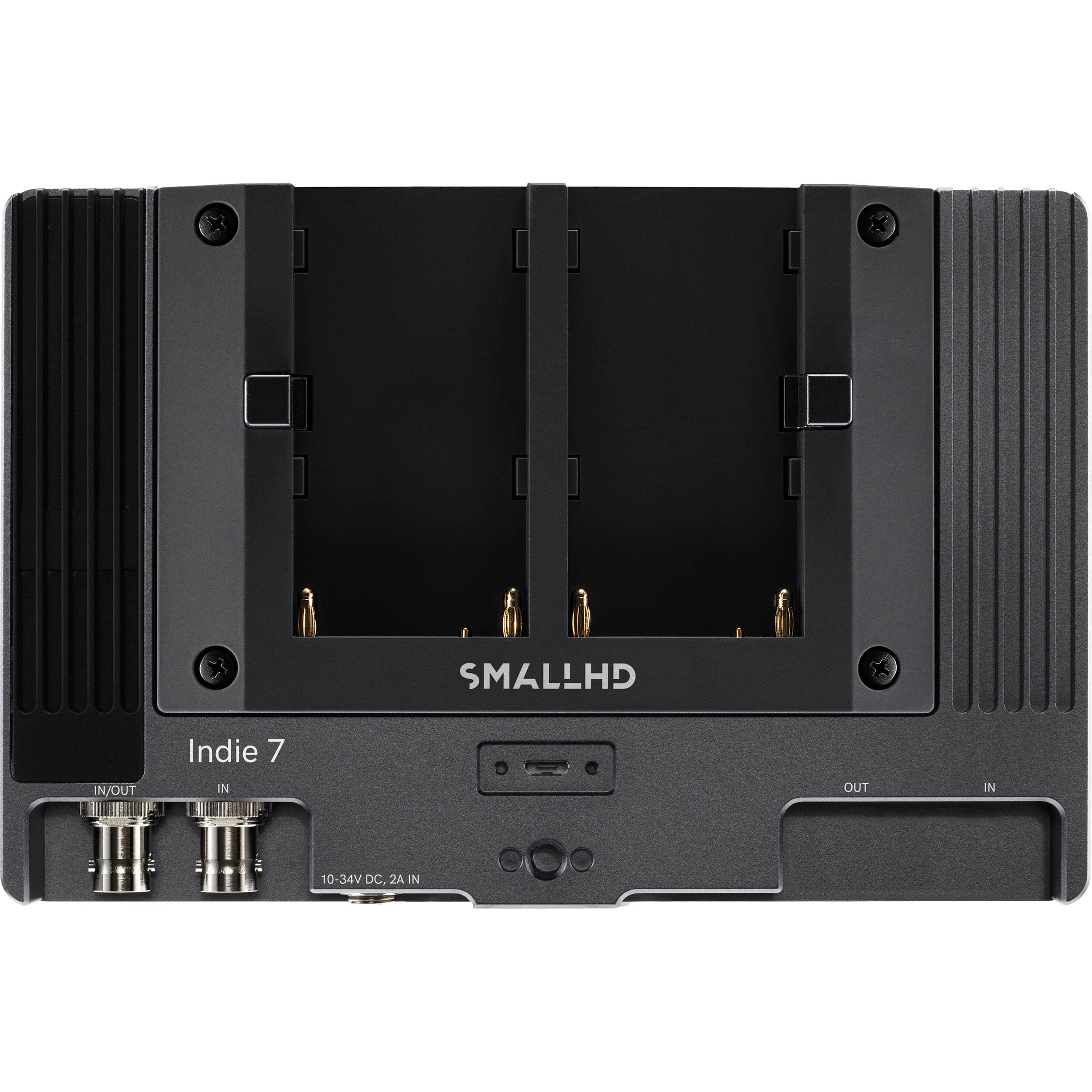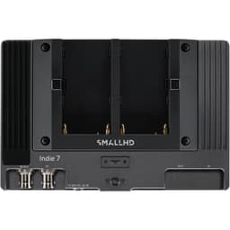 The INDIE 7 is powered using the included L-series battery plate or using the 2mm barrel input with a DC adapter. It can also be powered using separately available Gold mount or V-mount battery plates. An SD card slot allows you to import custom 3D LUTs and a micro-USB port to provide upgrades to the display. Four 1/4-20 threads allow you to mount the monitor in a variety of configurations. The 3.5mm headphone jack allows you to monitor the embedded audio from the HDMI or 3G-SDI inputs.